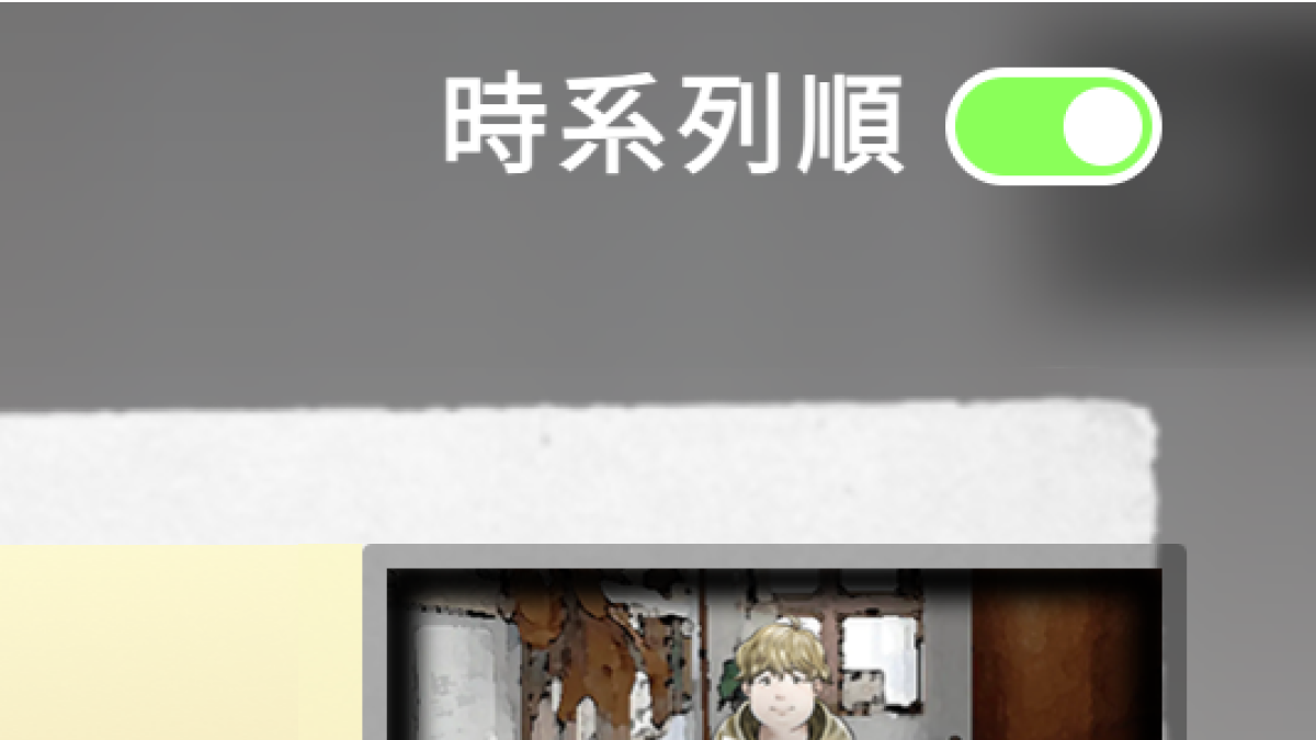 右上の「時系列順」をタップすると、シーンを時系列順に並び替えることができます。